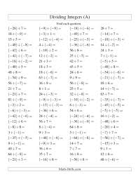 Dividing Integers Mixture Range 9 To 9 A Free Printable Math Worksheets Printable Math Worksheets Dividing Integers