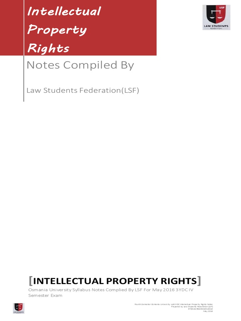 Intellectual Property Rights Notes For Law Exams Patent Trademark