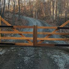 Tri State Gate Installed This Rustic Cedar Entry Gate On A Ranch Property In New York Although The Wooden Gates Driveway Driveway Gate Entrance Gates Driveway